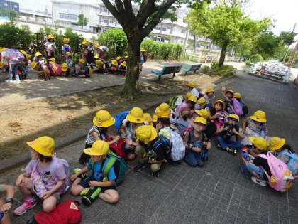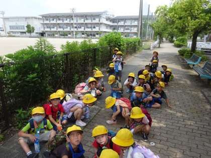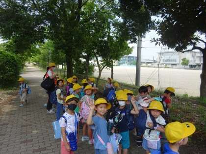 道中では、木陰で休憩を取りながら歩きました。もうすぐ目的地の布瀬南公園です。まだまだみんな元気です。