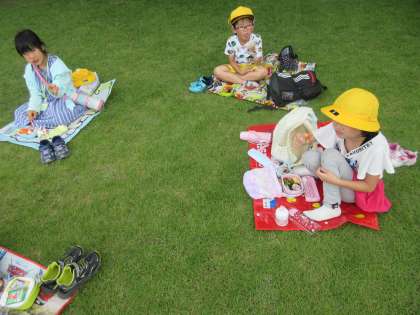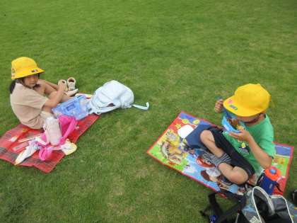 おいしいお弁当に子供たちは大満足。お弁当を食べ終わったら、食べた場所を進んで見届け、ゴミを拾う子供たちの姿が見られました。