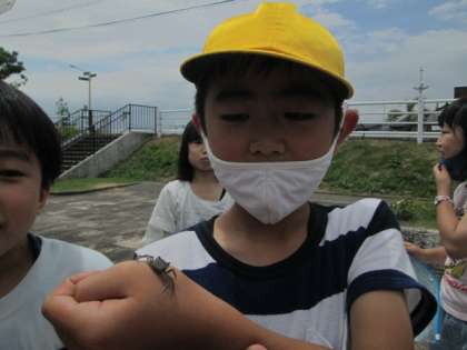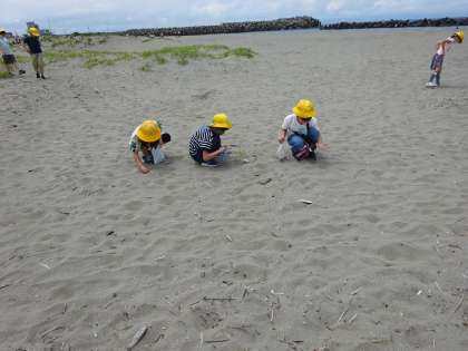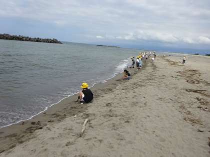 貝殻を拾ったり、波に近付いたり楽しみ方は様々ですが、同じ富山市ですが、私たちの住む堀川の町との違いについて考えている子どもたちでした。