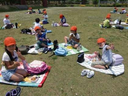 ファミリーの仲間と美味しいお弁当を食べました。みんな、笑顔いっぱいでした。持ち物の準備等のご協力、有り難うございました。