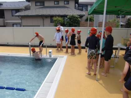 1時間目のプール開き集会に参加し校長先生のお話しを聞き、水泳学習への期待を心にもちました。そして大切なルールも学びました。いよいよ3時間目には、プールに入りました。みんな、安全に楽しく入ることができました。