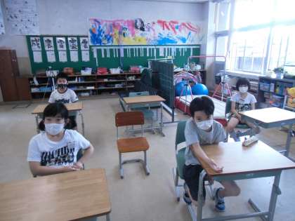 ビデオ視聴や校内放送を使っての全校プール開き集会がありました。校長先生のお話の後、プール使用の約束や安全な利用についての話がありました。