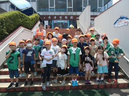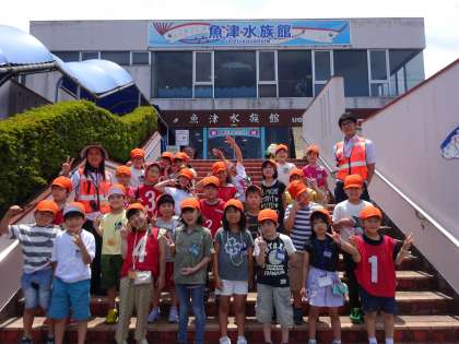 魚津水族館でのファミリー活動を終えた後、各クラスで集合写真を撮りました。天気もよく、外で撮ることができました。