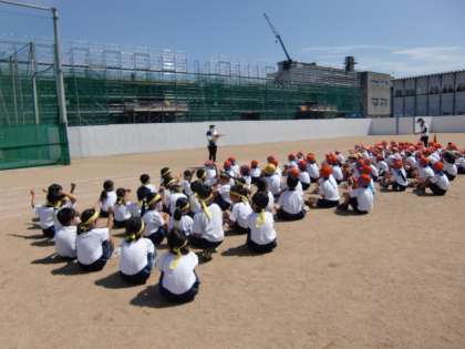 学年でリレーの練習をしました。みんな頑張る気持ちを心にもって、一生懸命に走りました。