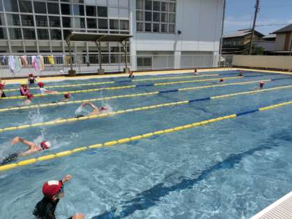 4年生の水泳学習です。昨年度は入れなかったプール。みんなとても嬉しそうです。
