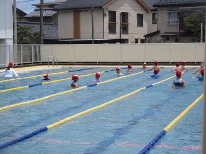 月曜日に初めて水泳学習を行いました。昨年は、入れなかったので、この日を楽しみにしていた子どもたちです。感染症に気を付けながら楽しもうとしている子どもたちでした。