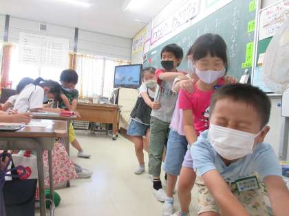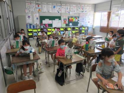 国語科「おおきなかぶ」の学習を進めています。今日は、登場人物になりきって、物語の流れを確認しました。音読練習を1日5回以上している子どもおり、気持ちを込めた音読ができるようになってきました。