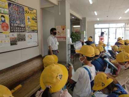 まちたんけん (2年生) 公開日 2021/07/01 更新日 2021/07/01 2年生 生活科のまちたんけんの学習にて「南富山駅」へ行きました。駅員さんに電車の種類やお客さんの数を質問し、予想以上の数に驚かされました。誰もが利用しやすいための工夫を見つけることができました。 また、日頃、よく目にする路面電車の知らなかったことをたくさん知ることもでき、実りあるまちたんけんとなりました。