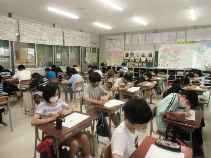今日から学習のまとめ週間に入りました。6年生は、国語の学習のたしかめを行いました。テスト前には、漢字を見直したり、大事なポイントを確認し合ったりする姿も見られました。時間いっぱい、集中して取り組んでいました。明日は算数を行います。