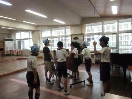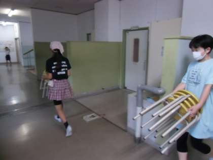6年生は朝から、先週の金曜日に行われた地域教育推進協議会で使用した会場の後片付けを行ってくれました。たくさんの椅子や机も、協力して運んでいく姿に頼もしさを感じました。進んで学校のために動く素敵な6年生です。