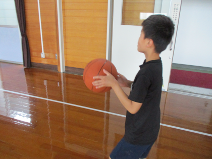 ボール遊びをしました!(なかよし4組) 公開日 2021/07/09 更新日 2021/07/09 特別支援 今日は、体育館でバスケットボールと親しみました。バスケットボールを持ち上げたり、運んだり、抱えたりするなど、様々な持ち方にチャレンジしました。今日は、笑顔がたくさん見られました。体育館を貸し切りで使うことができ、嬉しそうでした。また、様々な道具を使って活動していきたいと思います。