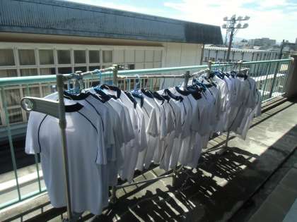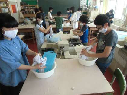 家庭科「夏をすずしく快適に」の学習で、衣服の手入れが大切なことを学び、洗濯に挑戦しました。