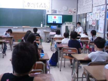 子供たちのがんばり紹介、移動される先生のお別れの会、5年2組のがんばり発表、終業式、夏休みの暮らし方についての指導がありました。