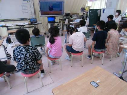 1学期終業式がオンライン映像の視聴を通して行われました。終業式の前に先生とのお別れの会があり、なかよし級の授業に出てくださった先生への感謝の言葉と花束贈呈をなかよし級代表児童がしました。