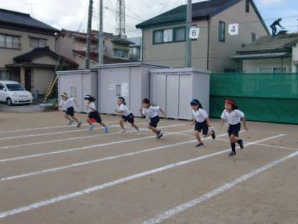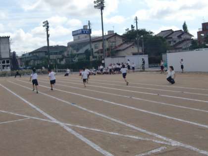 秋空の下で9月の記録会を行いました。ひとりひとりがめあてをもって、ゴールをめざして走りました。