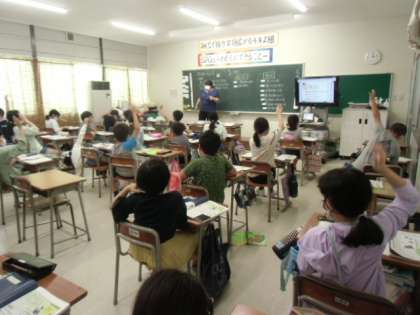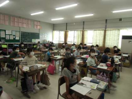 星も太陽や月と同じように時刻によって見える位置や並び方が変わるのか予想しました。Aさんは「一等星は動いていなかったので変わらない。」、Bさんは「星座は昔からああるので変わらない。」と予想しました。Cさんは「星が見える日と見えない日があるから変わる。」、Dさんは「流れ星は動くから変わる。」と予想していました。多くの子どもたちは星も位置や並び方は変わると予想していました。「どうか晴れますように。」とつぶやく子どもの姿もあり、次回学べる観察方法で星を眺めるのを楽しみにしているようでした。