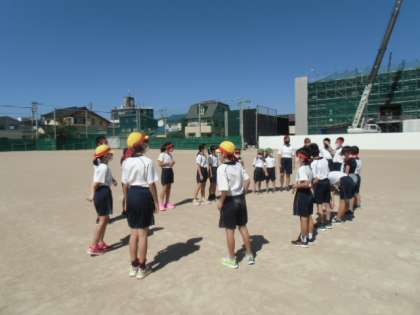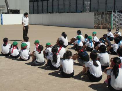 大休憩にスポーツウィークのF1リレーの選手が集まりました。団ごとに1年から6年までバトンを繋ぐ大事な競技の一つです。最後に団の6年生が中心になって自己紹介をしたり誰が誰にバトンを繋ぐが確認したりしていました。これから団ごとに練習が始まると思います。どの団もアンカーまでしっかりとバトンが渡るように一生懸命走ってほしいと思います。