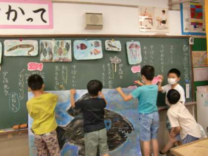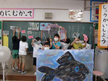 国語の学習にて (2年3組) 公開日 2021/09/21 更新日 2021/09/21 2年生 海の中のすばらしいものやおもしろいものを見るたびだんだん元気をとりもどした、3場面でのスイミーの気もちをより深く考えて話し合いをしました。「少しずつ元気を取り戻したのかな」「やっぱり、まだ悲しくて淋しいと思う」などスイミーになったつもりで想像したことや思ったことを伝え合いました。