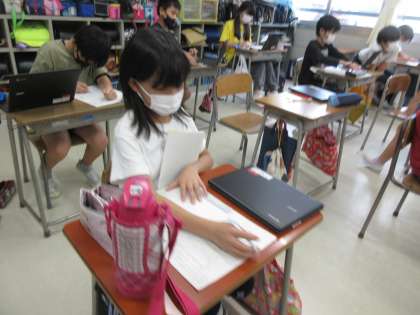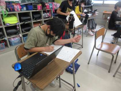 社会科「災害からくらしを守る」の学習が終盤に入りました。自分たちで課題を決め、調べてきたことを新聞にまとめています。国語で学習したことを使って字の形や大きさに気を付けて作成しようとする姿が見られます。