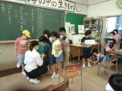 2組では、養護の教生先生とおわかれ集会をしました。子どもたちが音楽科の学習で練習した「虫のこえ」の演奏や、ファミリーで作ったわなげやクイズを楽しんでもらいました。プレゼントを渡すと、教生先生からも一人ひとりにお手紙がもらえました。喜んで手紙を受け取る子、「ありがとう」と今までの感謝を伝える子の姿がありました。