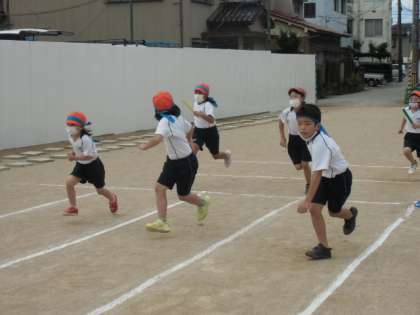 学年リレーの練習 (2年生) 公開日 2021/09/29 更新日 2021/09/29 2年生 キラキラ輝く空の下で、スポーツウィーク本番に向けてバトンパスの練習を熱心に取り組みました。本番ではひとりひとりのがんばりが、お日さまのように輝くことと思います。