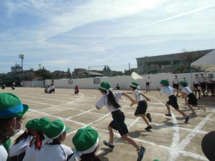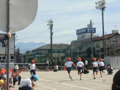 1年生にとって初めてのスポーツウィークですね。少し緊張しながらスタートラインに立ち、真っ直ぐゴールの方を見て走り出していました。2年生も走る順番が近づくにつれ「緊張してきた。」「頑張ろう。」と仲間と話していました。一生懸命仲間の応援をしたり走ったりしていました。走り終わると「1位だった。」「頑張って走った。」など伝えてくる子どもが多かったです。