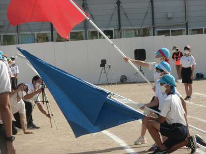 6年生にとって、小学校生活最後の運動会である、スポーツウィークの幕が上がりました。最高学年として、競技、応援、係の仕事に責任をもち、全力で取り組もうとしている子どもたちです。思いを込めて描いた各団のマスコットも、見事な仕上がりになりました。迫力あるマスコットが掲げれた場所の横を通った下級生が、「すごい!」「かっこいい!」と口々に声を上げていました。