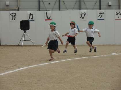 3限目に1年生のリレーが行われました。バトンをアンカーまで繋ごうとバトンを握りしめながら走っていました。1年生は明後日に団体競技の玉入れがあります。昼休みに早速玉入れの練習をしていました。玉入れも練習の成果を発揮してたくさんかごに玉を入れてくださいね。