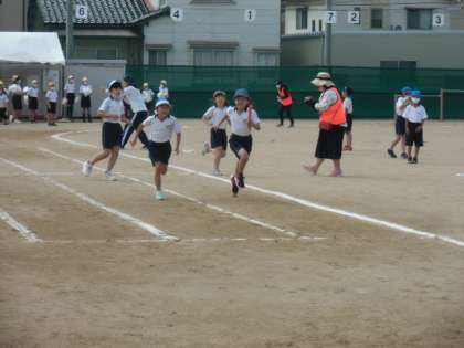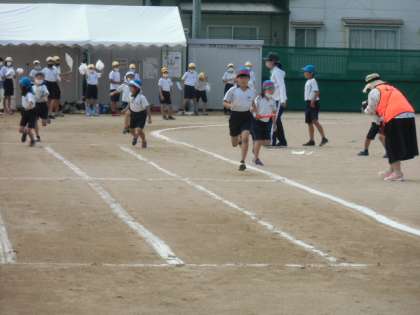 5限目に3年生のリレーが行われました。バトンを繋ごうと次の走者が待つところまで懸命に走っていました。バトンをもらうとすぐにインコースに入り前を走る相手を追いかけていました。3年生は明後日に団体競技の綱引きがあります。団の仲間と共に息を合わせながら綱を引っ張ってほしいと思います。