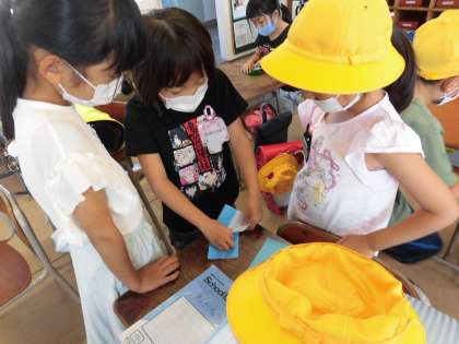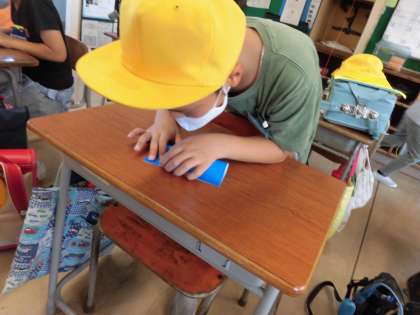 正解は、1年生さんと6年生さんに渡すプレゼントだそうです。2年4組の青団の女の子たちが、「1年生は、昨日リレーを頑張ってくれたからそのお礼に渡したい」と折り紙でメダルやハートを作っていました。男の子は、「お世話になった6年生に渡したい」と丁寧に折り紙を折っていました。スポーツウィークの中で、同じ団の先輩として、後輩として、感謝の気持ちを伝える手段を考え、自分たちで行動する姿に、頼もしさを感じました。