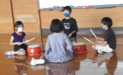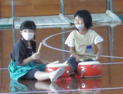 音楽科「わだいこで音楽」の学習が始まりました。スポーツウィークで6年生が応援する姿をまねて、「行け行け!○団」と声を合わせながら和太鼓をたたく姿が見られました。仲間と二人で、リズムをたたきながら確認し合っている姿もあります。これからどんな音楽をつくっていくかとっても楽しみな2年生です。
