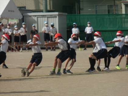 3年生の次に4年生の綱引きが始まりました。前日も綱引きのコツを復習したり、朝も並ぶ順番について確認したりしていました。「絶対1位になろう。」「この種目大事だよ。」などと仲間と声を掛け合いながら入場し、最後まで力いっぱい綱を引っ張っていました。