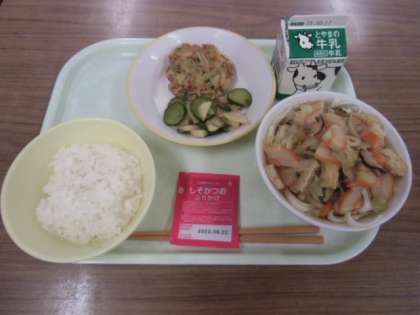 今日の給食 公開日 2021/10/11 更新日 2021/10/11 給食室 えごまは、シソ科の植物です。種をつぶした油に含まれる栄養価が高く、注目されています。今日は、かき揚げに 乾燥された葉がまざっています。