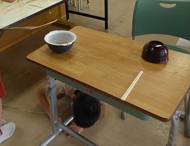 今日は,2時間かけて、バケツで育てた稲の脱穀と籾すりをしました。