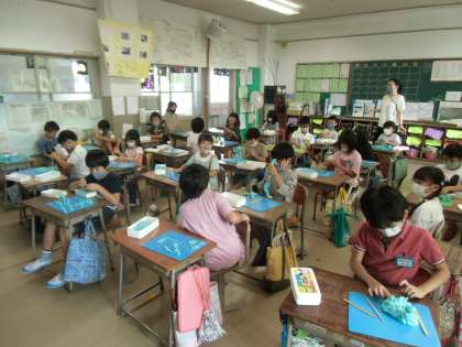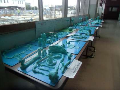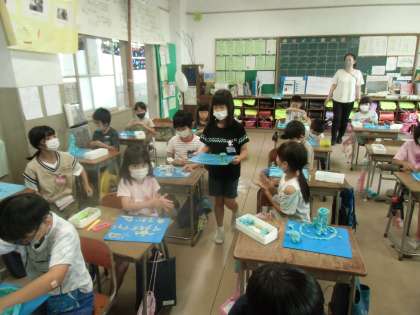 図画工作科の学習で粘土を使い、スポーツウィークの思い出を形に表そうと取り組みました。ある一種目のひとつのシーンが思い出という子どももいれば、全部が思い出という子どももいました。それぞれが自分の思いを形に表そうと工夫し、粘土の中に心棒を入れ、玉入れの棒の高さやまっすぐさを表したり、1場面を絵のように平面的に表したり、目に見えない心のかたちを炎で表したりするなど、どのように表すことができるか考えながら粘土での造形を楽しみました。