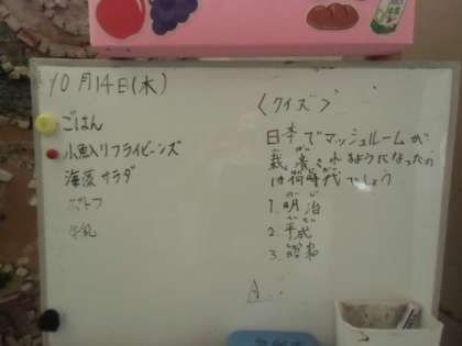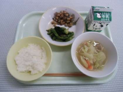小魚は、骨のまま食べられる魚です。揚げた大豆と一緒によくかんで食べましょう。