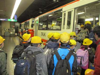 室堂から立山トンンネルトロリーバスに乗り、大観峰を目指しました。見た目はバスなのに、まるで電車のような乗り物。日本で唯一運行しているトロリーバスの乗り心地に、子どもたちは驚いていました。