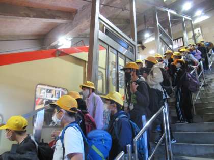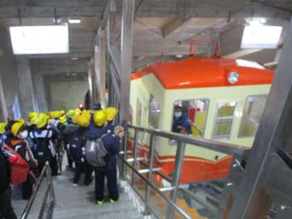 ロープウェイを降りたら黒部ダムまであと一息。最後は、黒部平から黒部湖までをつなぐ黒部ケーブルカーに乗りました。標高差約400mを進む、日本でもここだけにしかない「全線地下式」のケーブルカーだそうです。普段の電車とは違う感覚がありました。