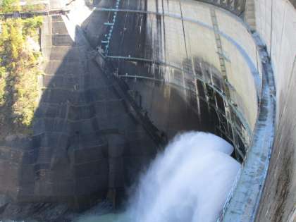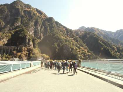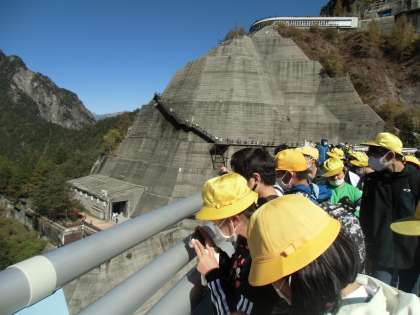 様々な乗り物を乗り継ぎ、ついに黒部ダムに到着しました。子どもたちの目には、日本一の高さを誇るダムと、周りを囲むようにしてそびえたつ壮大な山々が飛び込んできました。圧巻の放水や、そのきれいな景色に、思わずカメラを構え、写真をたくさん撮っていました。