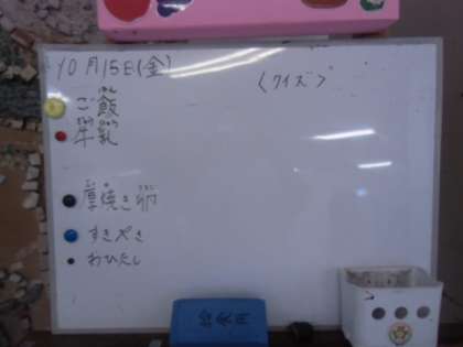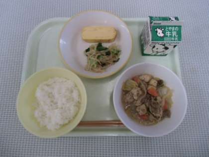 今日の給食 公開日 2021/10/15 更新日 2021/10/15 給食室 みなさん、すき焼きは好きですか?今日は、すき焼きという献立の由来についてのお話です。昔の農具で「すき」というものがありました。それを使い、肉や魚や豆腐などを焼いて食べていたことから、すき焼き というようになったそうです。