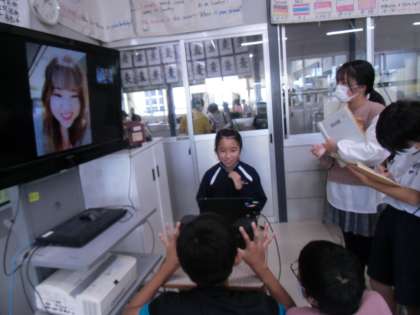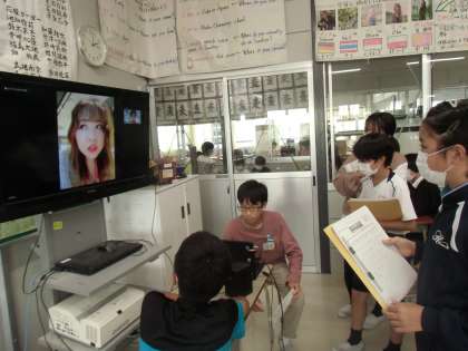 中国に住むKさんと(6年生) 公開日 2021/10/19 更新日 2021/10/19 6年生 「People living in the world」の学習で、中国に住むKさんと、オンラインで会話をしました。子どもたちはKさんとの会話を楽しみにしていました。学習を進めている中で、聞いてみたい・話したいと思ったことを、英語でやりとりすることができました。笑顔と明るい声で質問に答えてくれるKさんでした。