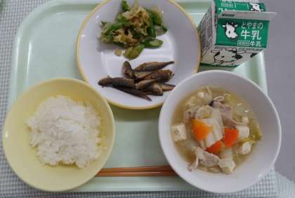 今日の給食 公開日 2021/10/20 更新日 2021/10/20 給食室 よく食べるアスパラガスは、みどり色ですが、白いアスパラガスもあることを知っていますか?日の光をあてずに育てると、白いアスパラガスができます。