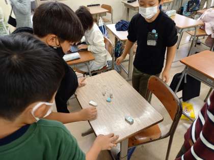 休み時間の様子(3年生) 公開日 2021/10/25 更新日 2021/10/25 3年生 最近の休み時間の流行りは、消しゴムバトルです。 自分の消しゴムが、机の上から落とされると負けです。 子どもたちは身近なものを何でも遊びにする天才なのだなと感じました。 毎日熱い戦いがくり広げられていますが、大事な消しゴムを無くさないでくださいね。