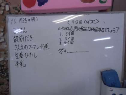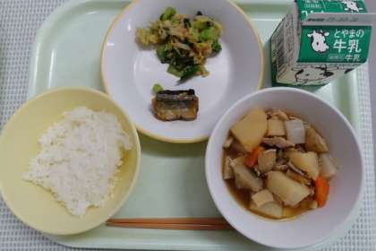 今日の給食 公開日 2021/10/25 更新日 2021/10/25 給食室 秋の魚といえば、さんまですね。今年は、さんまがあまりとれないため、お店でもあまり出回っていないようです。今日は、マーマレードジャムと一緒に煮ています。