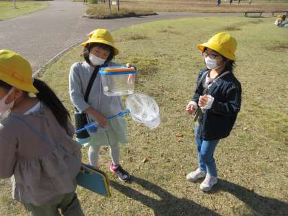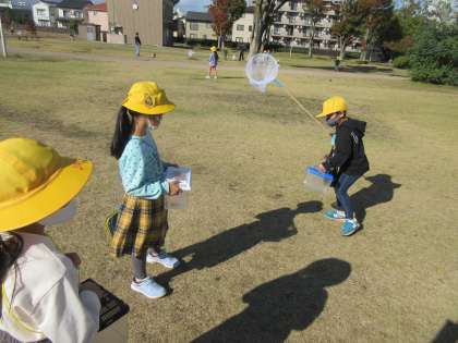 今日の1、2時間目に東中野公園にいき、「むしとなかよし」の学習を行いました。トンボの飛ぶ速さに驚いたり、隠れている虫を見付けたりするなど、おもいきり虫と関わる子どもたちの姿が見られました。虫かごや虫かごなどの準備ありがとうございました。