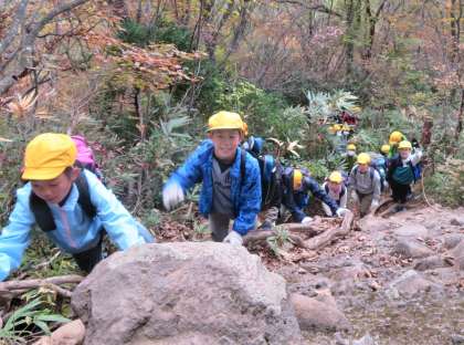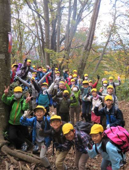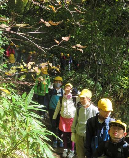 いよいよ来拝山登山が始まりました。 杉林を抜け、少しずつ山の中へと進みます。
