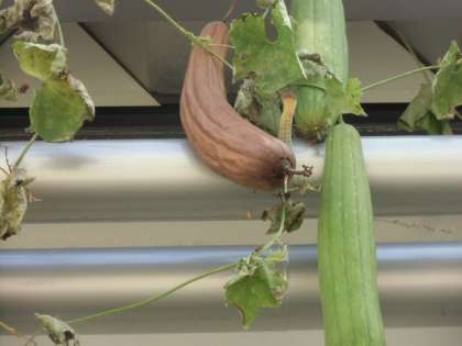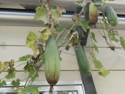 ヘチマの実 公開日 2021/11/09 更新日 2021/11/09 職員室 ヘチマの実が大きくなって緑から少しずつ茶色に変化してきました。下の方から茶色になることが分かりますね。この茶色になったヘチマはどうなっていくのかまた観察してみてくださいね。
