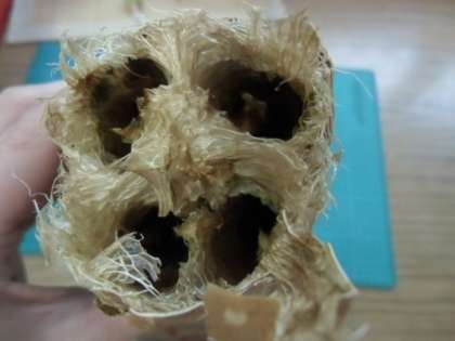 皮がカラカラになり少しずつ剥がれていました。中からはたくさんの種も出てきました。ヘチマを乾燥させてカラカラになったら簡単に皮が剥け、ヘチマのたわしになります。興味のある人はぜひヘチマのたわしを作ってみてくださいね。