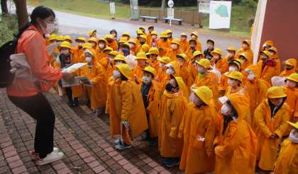 太閤山ランドで行ったウォークラリーでは、ファミリーに渡した1枚の地図を頼りにして、各ポイントに立っている先生からサインを集めて回りました。道で出会った一般のお客様にも「こんにちは」と挨拶をする子ども、仲間の歩くペースに合わせるため歩くのを待ってあげている子どもなど、思いやりにあふれた姿をたくさん見ることができました。
