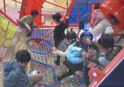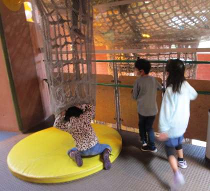 こどもみらい館でのファミリー活動の様子です。ファミリーでどこに遊びに行くか相談しながら楽しく遊具で遊ぶことができました。靴を脱いで遊ぶ場所では、他のお客様のことも考えてしっかりと隅に揃えて靴を置こうとする子どもが多く見られました。